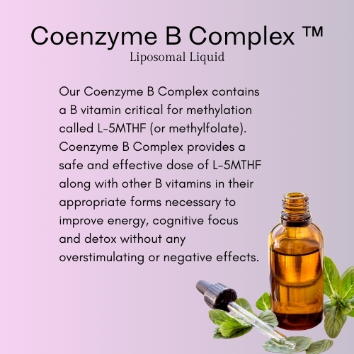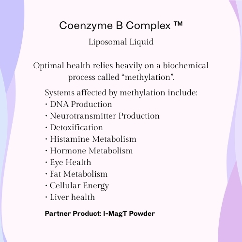 Safe and effective doses of B Vitamins in their phosphorylated forms delivered in a liposomal liquid. Our formula contains: Inositol, Betain, Benfotiamine, B5 Pantothenic Acid, Niacinamide, B2-R5P, B6-P5P, Methyl B12, Hydroxy B12, Biotin, L5MTHF.
