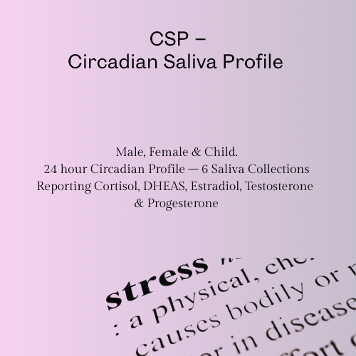 *Male, Female & Child* 24 hr Circadian Profile 6 Saliva Collections. Reporting Cortisol, DHEAS, Estradiol, Testosterone& Progesterone. Includes Report of Findings and Product Recommendations