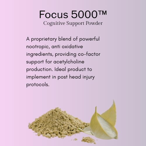 A proprietary blend of powerful nootropic, anti oxidative ingredients, providing co-factor support for acetylcholine production. Ideal product to implement in post head injury protocols.
