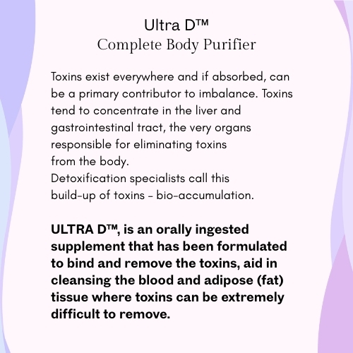 Capsules, formulated to bind and remove the toxins released from the body into the intestinal tract. By helping clear congestion in the primary organs of elimination, UltraD is an effective whole-body detoxifier. Use Detoxinol crème for complete detoxification.